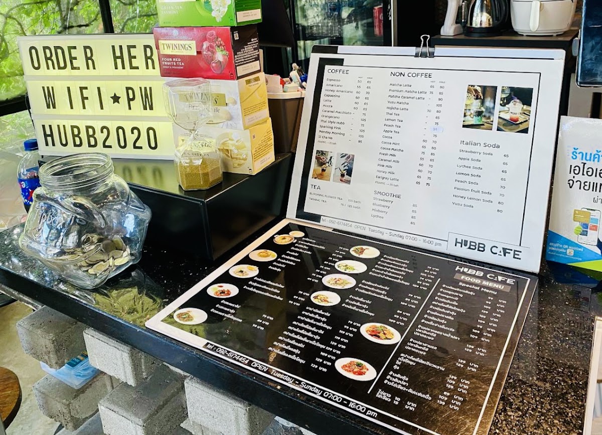 HUBB Cafe, nestled in the serene Surasak area of Si Racha, is a delightful haven for food and beverage lovers. This halal-certified cafe boasts a beautifully designed loft atmosphere, accentuated by relaxing greenery and a charming glasshouse setting.
